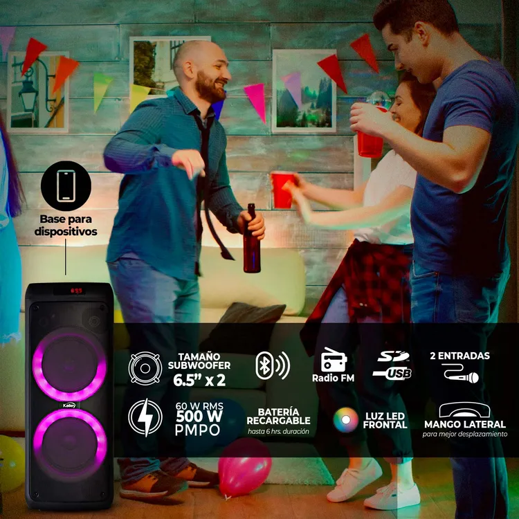 PARLANTE KALLEY K-BSK60W Negro BT Doble woofer 6.5″, para una mejor experiencia de sonido.